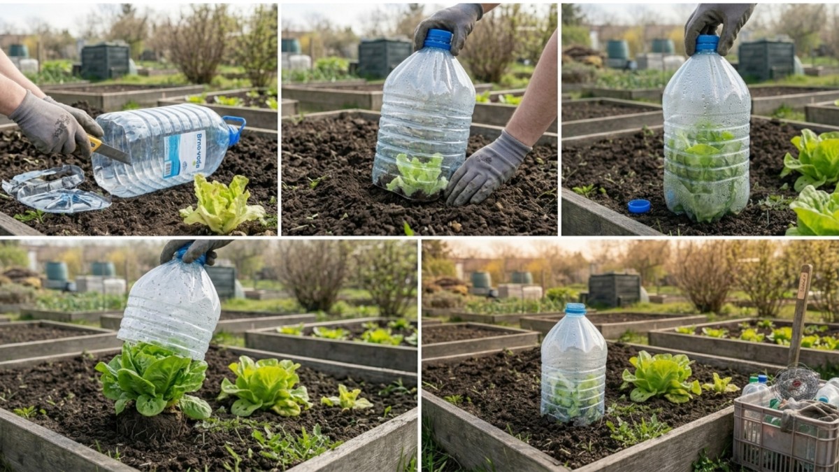 Výroba mini skleníku je otázkou několika minut. Stačí odříznout dno PET lahve, nasadit ji nad sazenici a lehce zatlačit do půdy, aby kolem rostliny vzniklo chráněné prostředí