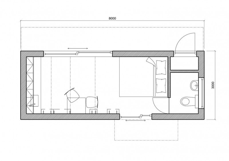 Půdorys minidomku který slouží k plnohodnotnému celoročnímu bydlení. Lze pořídit za zlomek ceny běžného rodinného domu