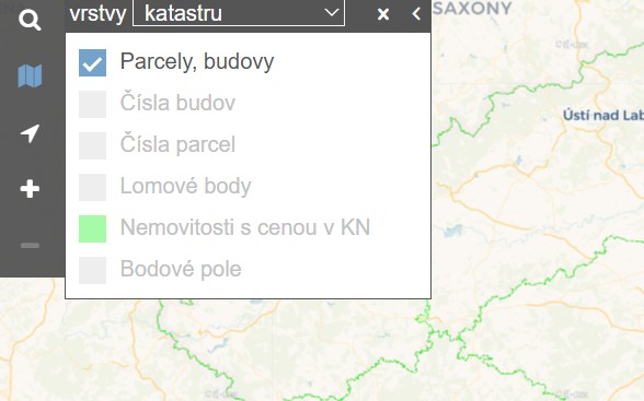 V levém šedé sloupci klikněte na ‘Výběr vrstev pro zobrazení v mapě‘. Zobrazí se vám nová roleta