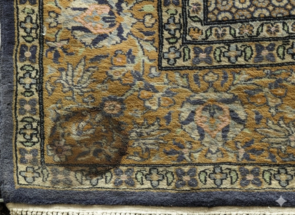 Krásná ukázka koberce poškozená umístěním květináče nesprávným způsobem