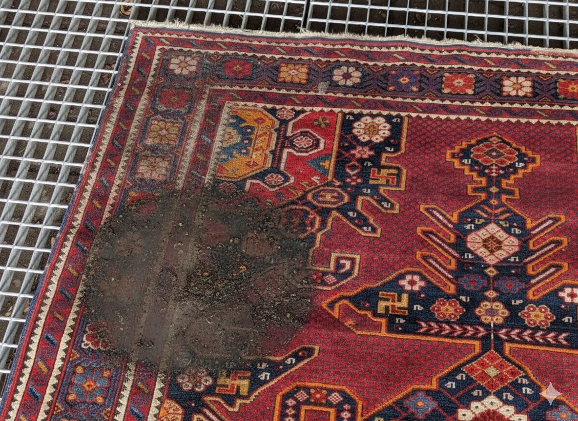 Zde je již koberec květináčem velmi masivně poškozen a náprava bude náročná
