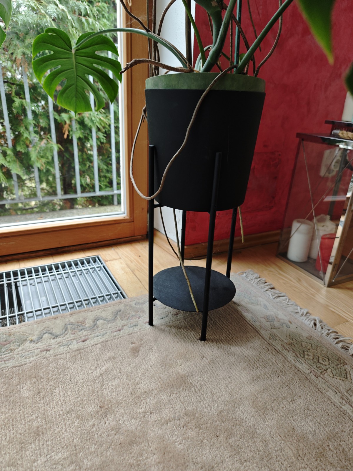 Ukázka správného umístění květináče na koberec. Ani to není ideální, jedná se však o nejšetrnější způsob