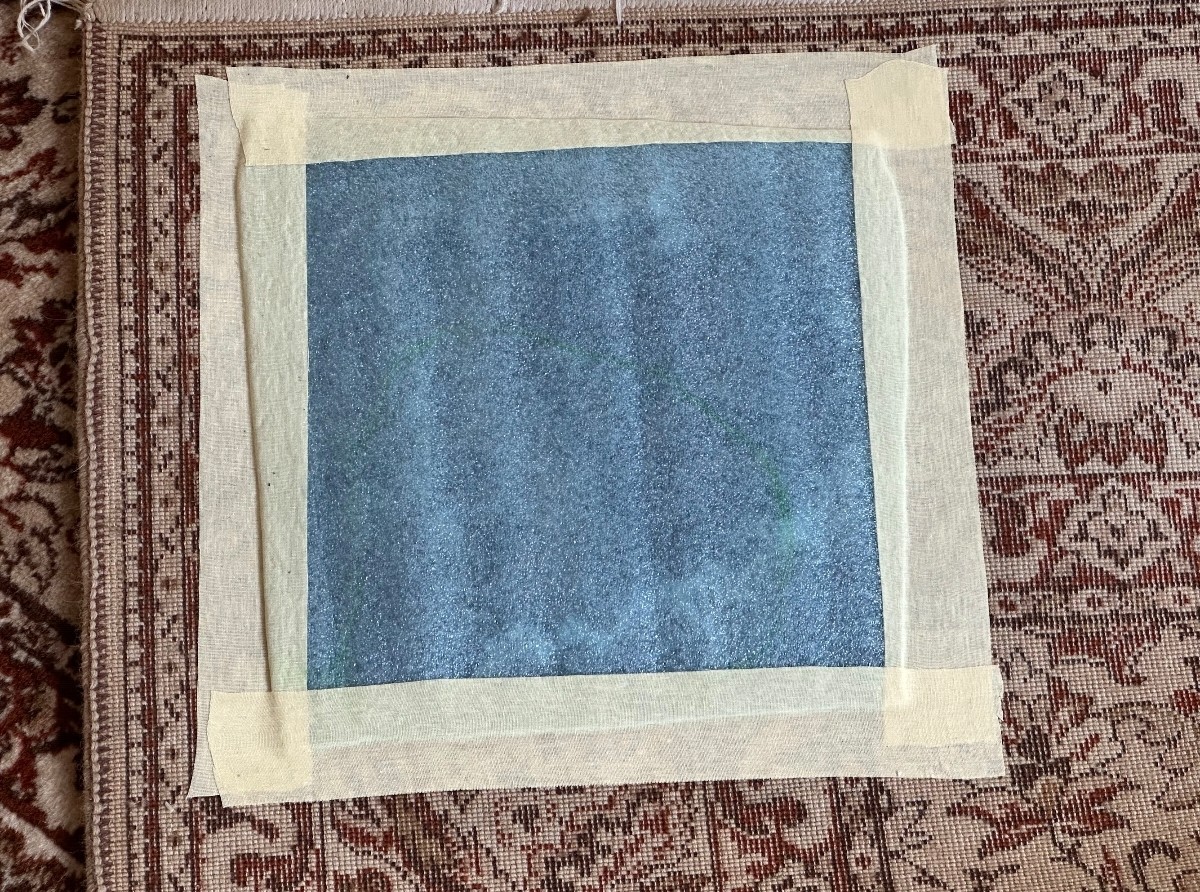 Ukázka jedné z fází procesu rekonstrukce koberce poškozeného chybným umístěním květináče