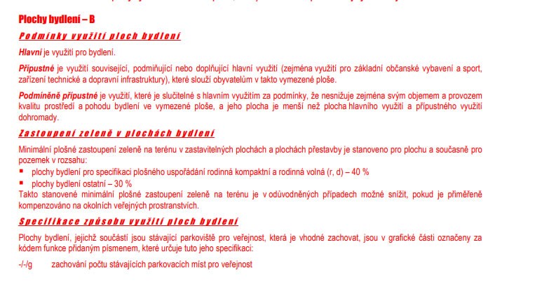 Zastavitelnost pozemku definovaná pomocí textové části územního plánu
