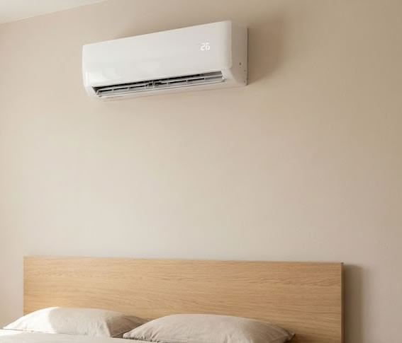 Klimatizace umístěná v ložnici slouží jak k chlazení tak k vytápění
