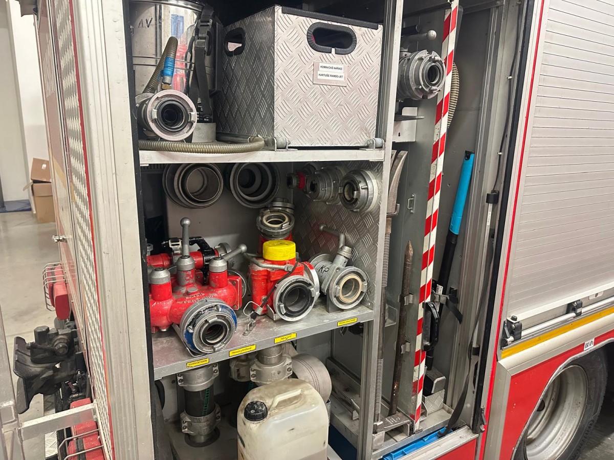 Hasiči v tomto úložném prostoru připravují a propojují hadice a armatury