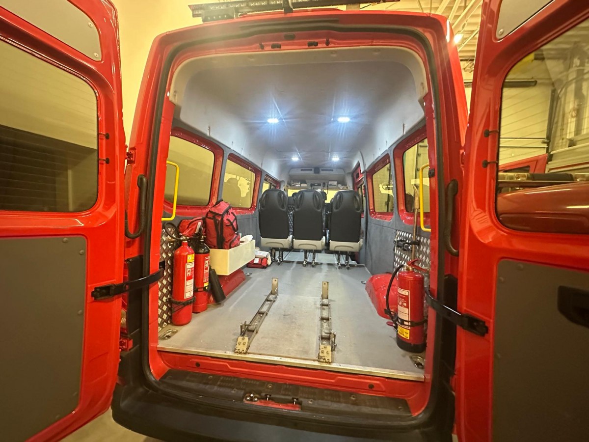 Interiér umožňuje bezpečné umístění a zajištění vozíku během přepravy a současně slouží k transportu osob a vybavení při zásazíc