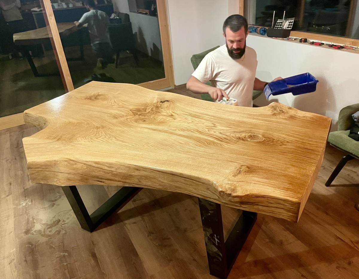 „Večer jsme pak s manželem společně natírali desku tvrdým voskovým olejem, který nádherně zvýraznil kresbu dřeva,“ říká Bára