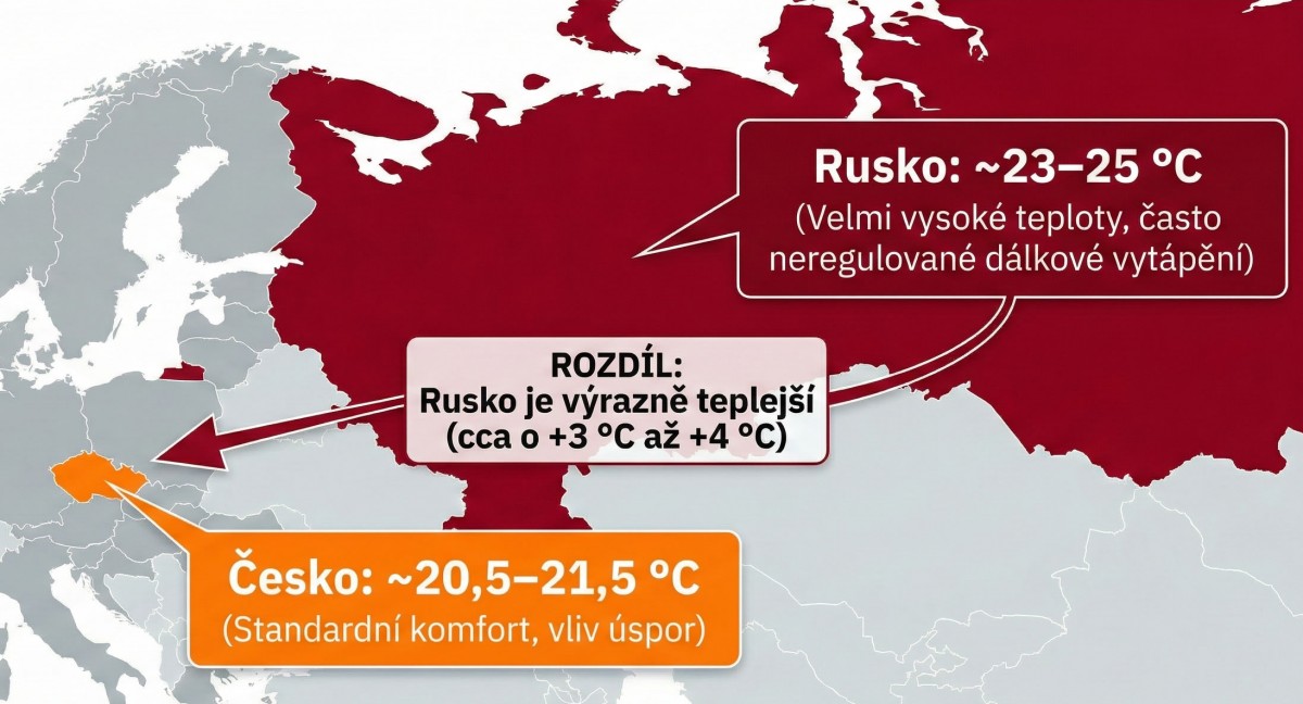 Teplota v ruském a českém obyváku se v zimě dost zásadně liší
