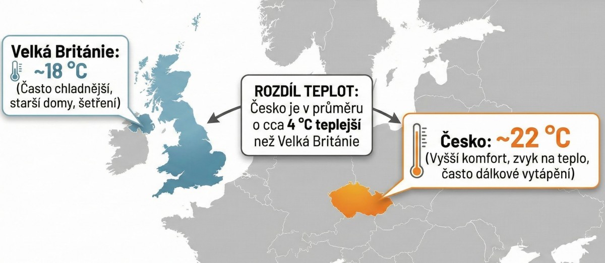 Britové mají v zimě teplotu v obyváku přibližně o 4 stupně Celsia nižší, než jsme zvyklí u nás