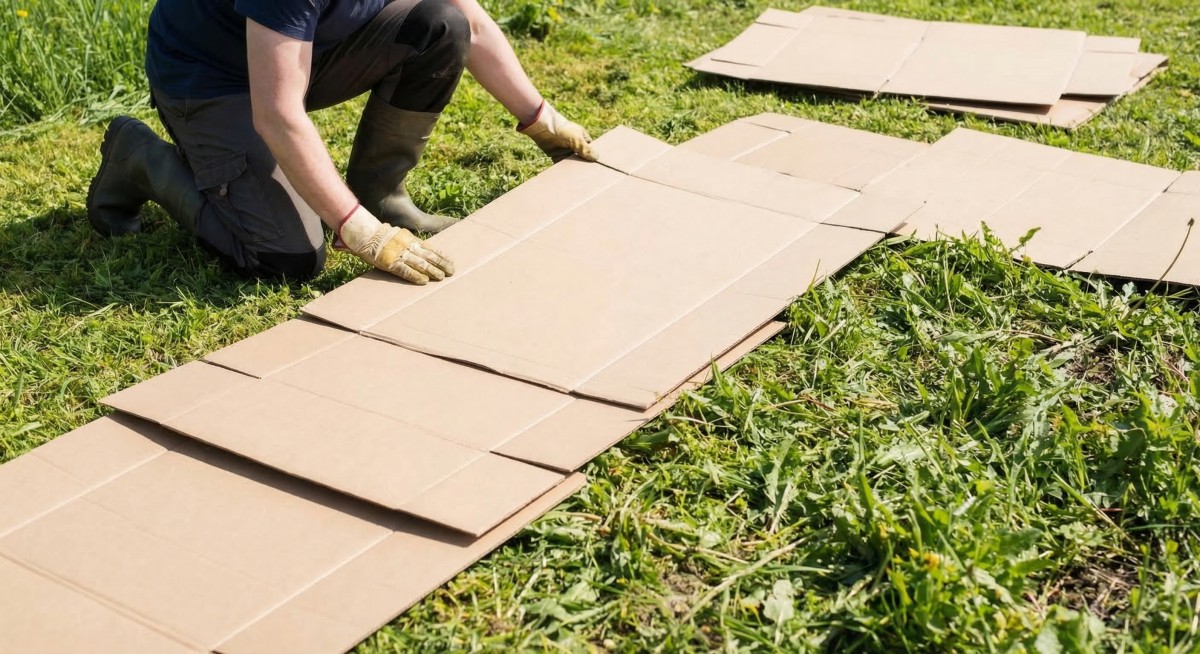 Celou plochu pečlivě pokryjte obyčejným hnědým kartonem (bez izolepy, barev a kovových sponek)