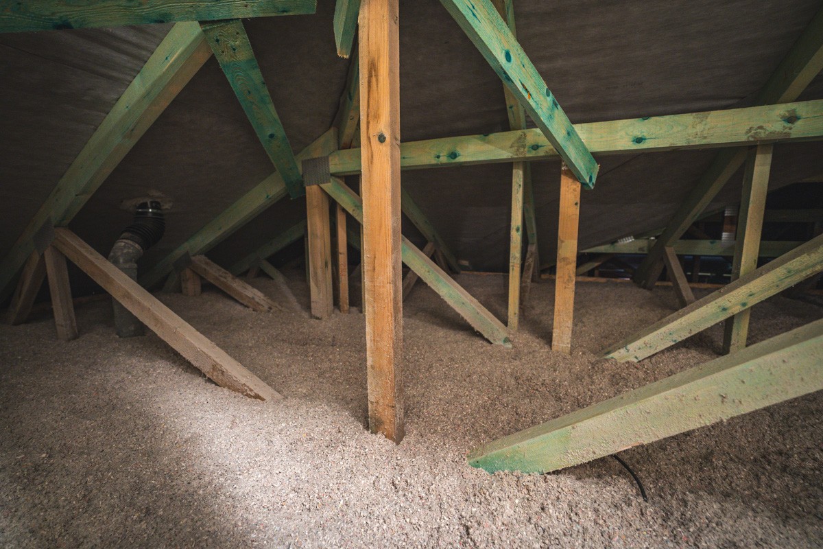 Ve stropě je silná vrstva foukané izolace