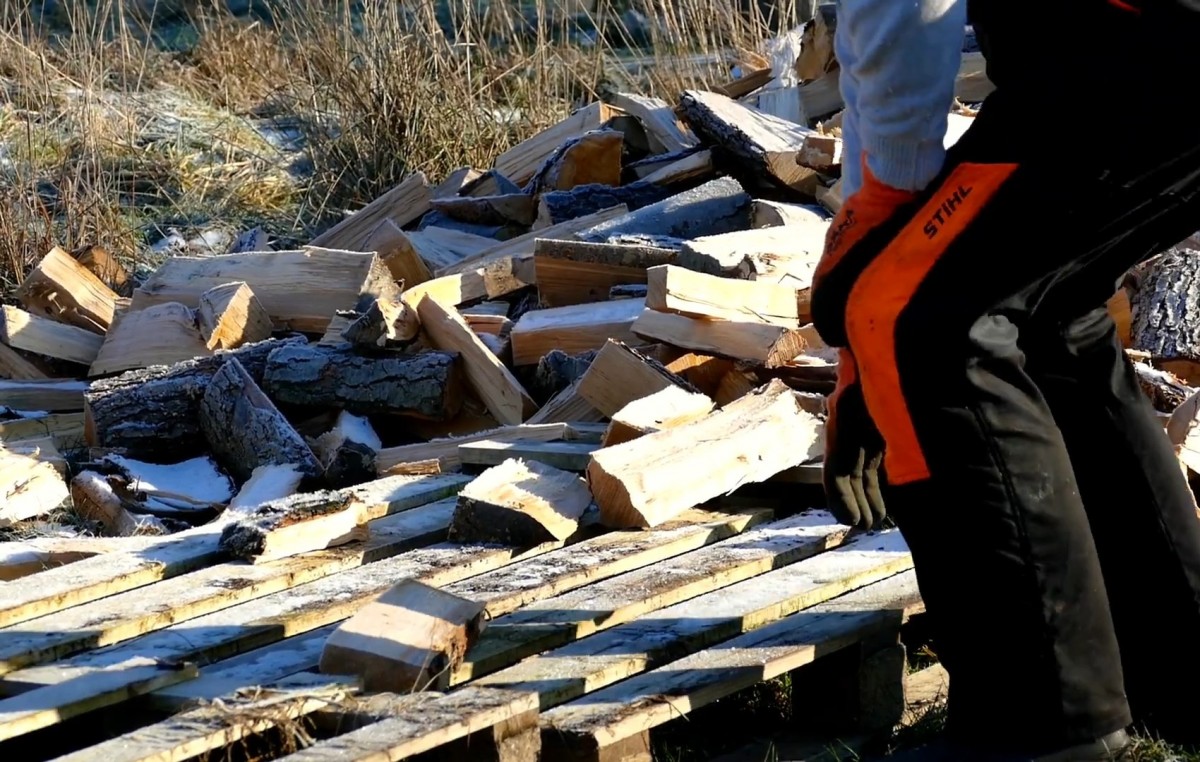 Hromada dřeva ležící na zemi. Kdyby takto zůstalo ležet bez podkladu, začne zahnívat dříve, než stačí proschnout
