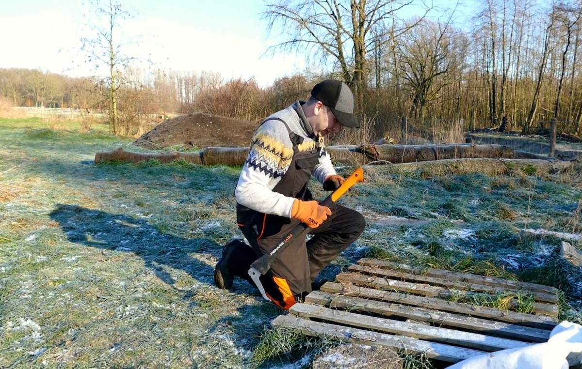 Spojování palet k sobě. Dobrý základ zajistí, že se dřevo nesesype při silnějším větru jako domeček z karet