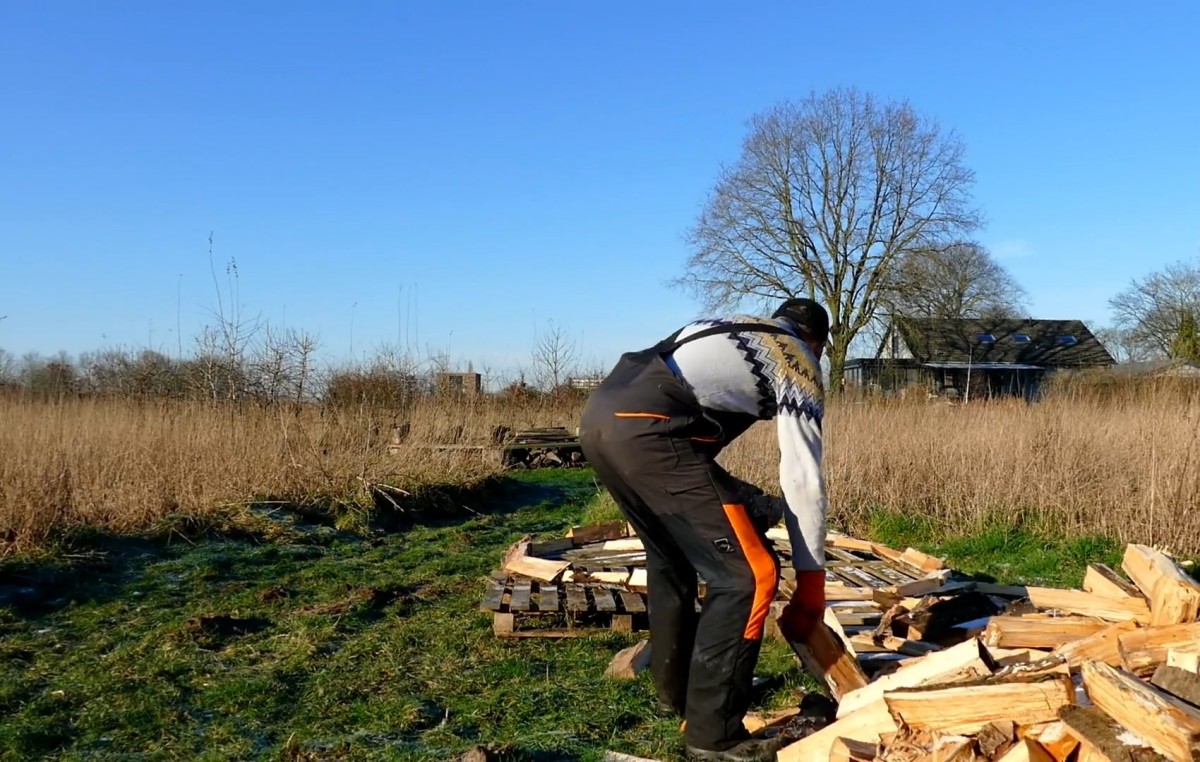 Skládání dřeva na větší ploše vyžaduje hodně přesunů. Pro vnější obvod je nutné vybírat polena o zhruba stejné délce