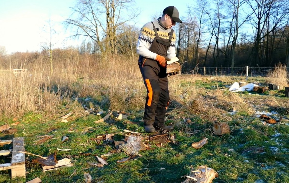 Příprava polen pro další skládání dřeva. Dodržení správného postupu od základu je pro stabilitu stavby naprosto klíčové