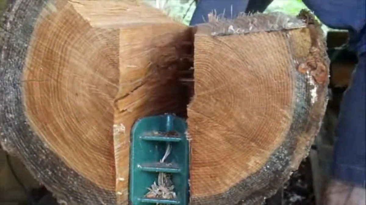 Nasazení mechanické štípačky výrazně urychluje práci. Aby byla Holzmiete stabilní, štípané dřevo lépe sedí v obvodové zdi a netvoří zbytečné mezery