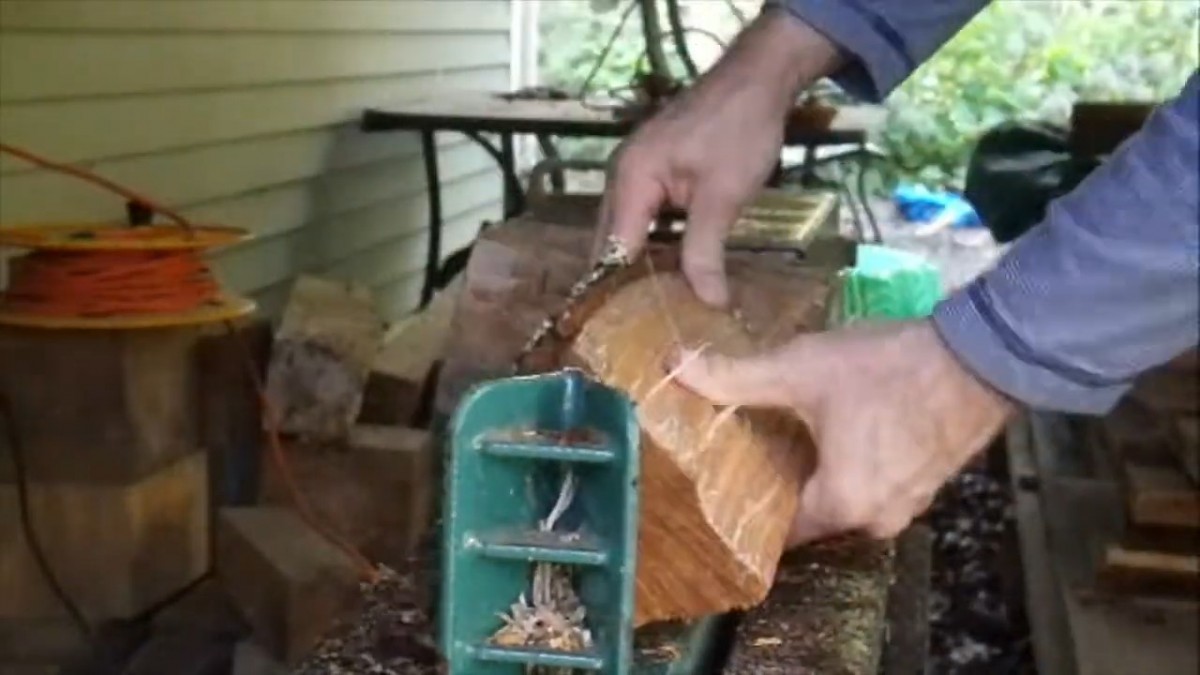Práce se dřevem a kůrou. Odštěpky z této fáze se dají chytře využít k podložení první řady pro získání důležitého pětistupňového náklonu