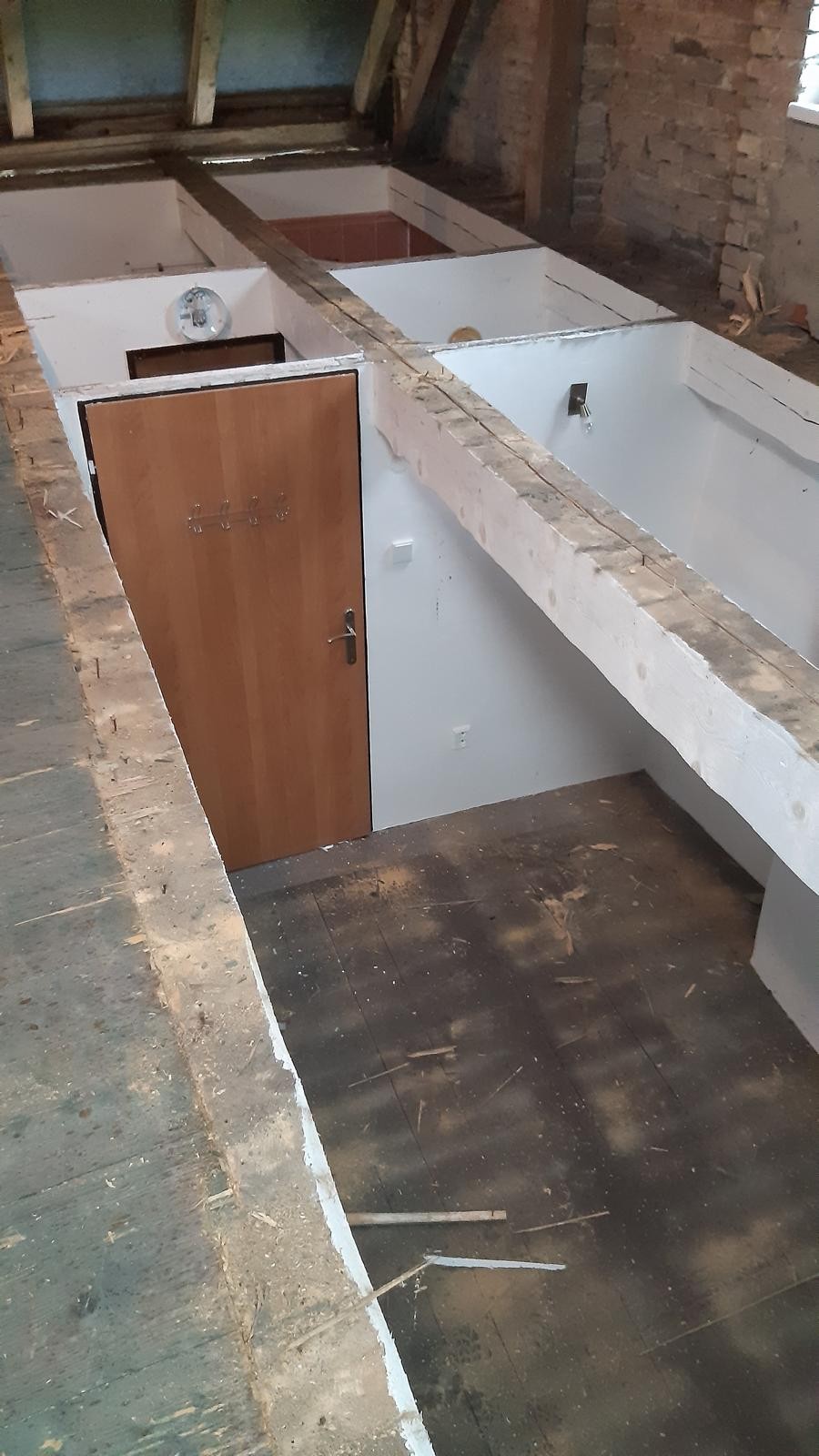 Fotografie z doby, kdy vyměňovali podlahy a zároveň stropy na půdě, protože byly prožrané červotočem