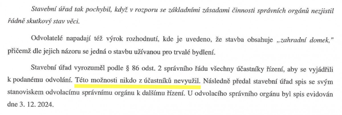 Dokument uvádí, že úřad nepostupoval správně a nezjistil skutečný stav věci, přesto předal případ k dalšímu řízení bez vyřešení zásadních námitek