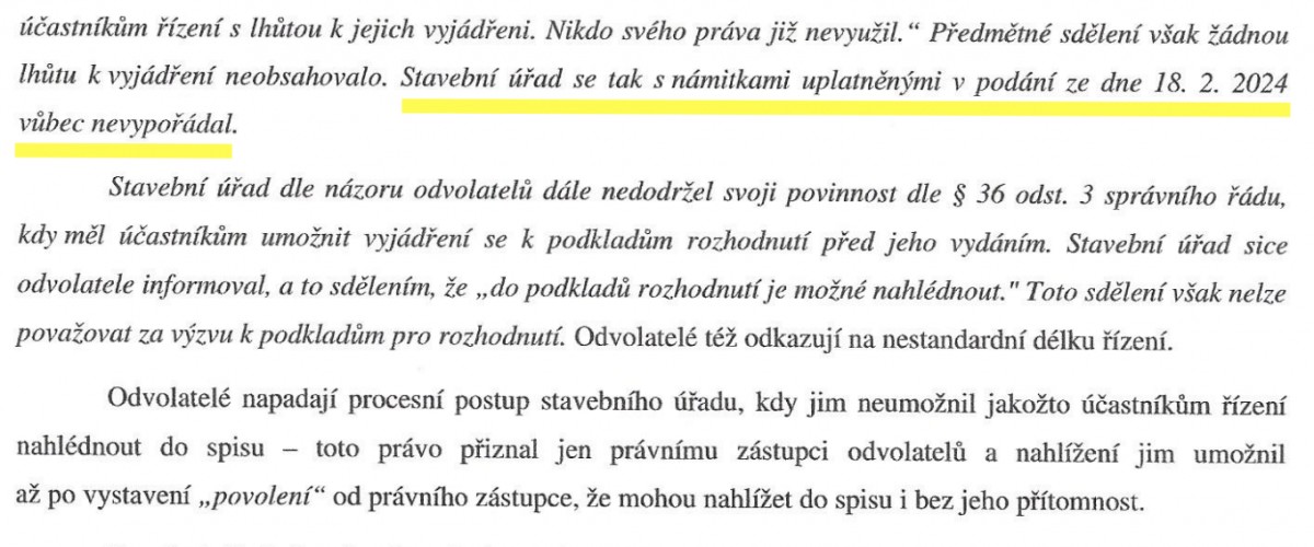Podle dokumentu se úřad vůbec nevypořádal s námitkami Machkových a neumožnil jim plně uplatnit jejich práva v průběhu řízení