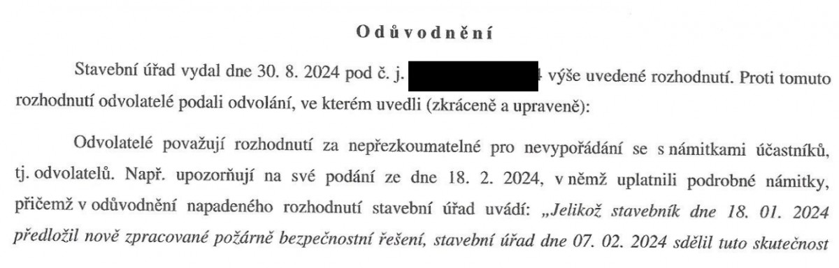 Odvolatelé označují rozhodnutí úřadu za nepřezkoumatelné, protože se nevypořádalo s jejich námitkami, které podle nich zásadně ovlivňují celý případ