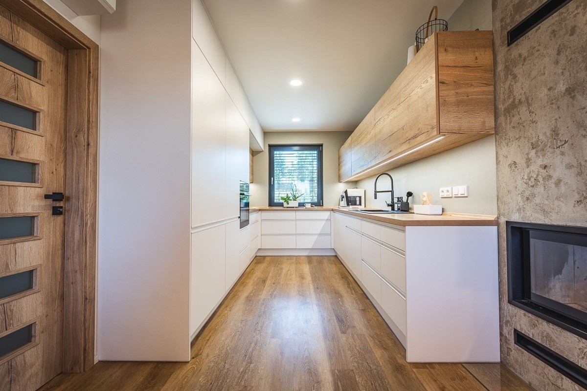 Díky správné orientaci domu a množství slunečního světla se zároveň nemusí bát přehřívání ani roztažení spár, protože zdejší podlahy na rozdíl od laminátu reagují na teplo jen minimálně