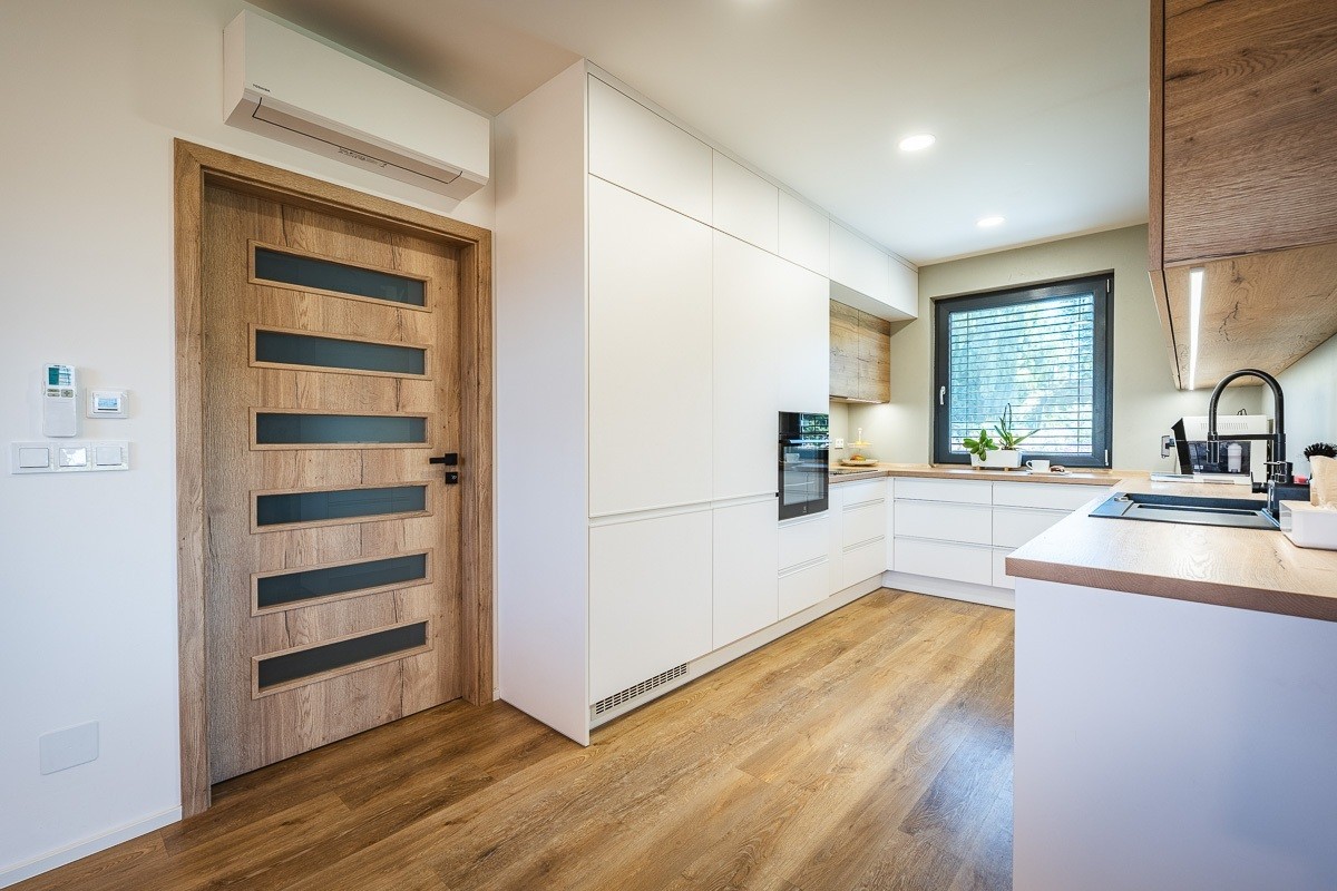„I když jsme topili v obýváku krbem, tak teplo z podlahovky cítíme a je to příjemné. Máme lepený vinyl,“ říká Tomáš