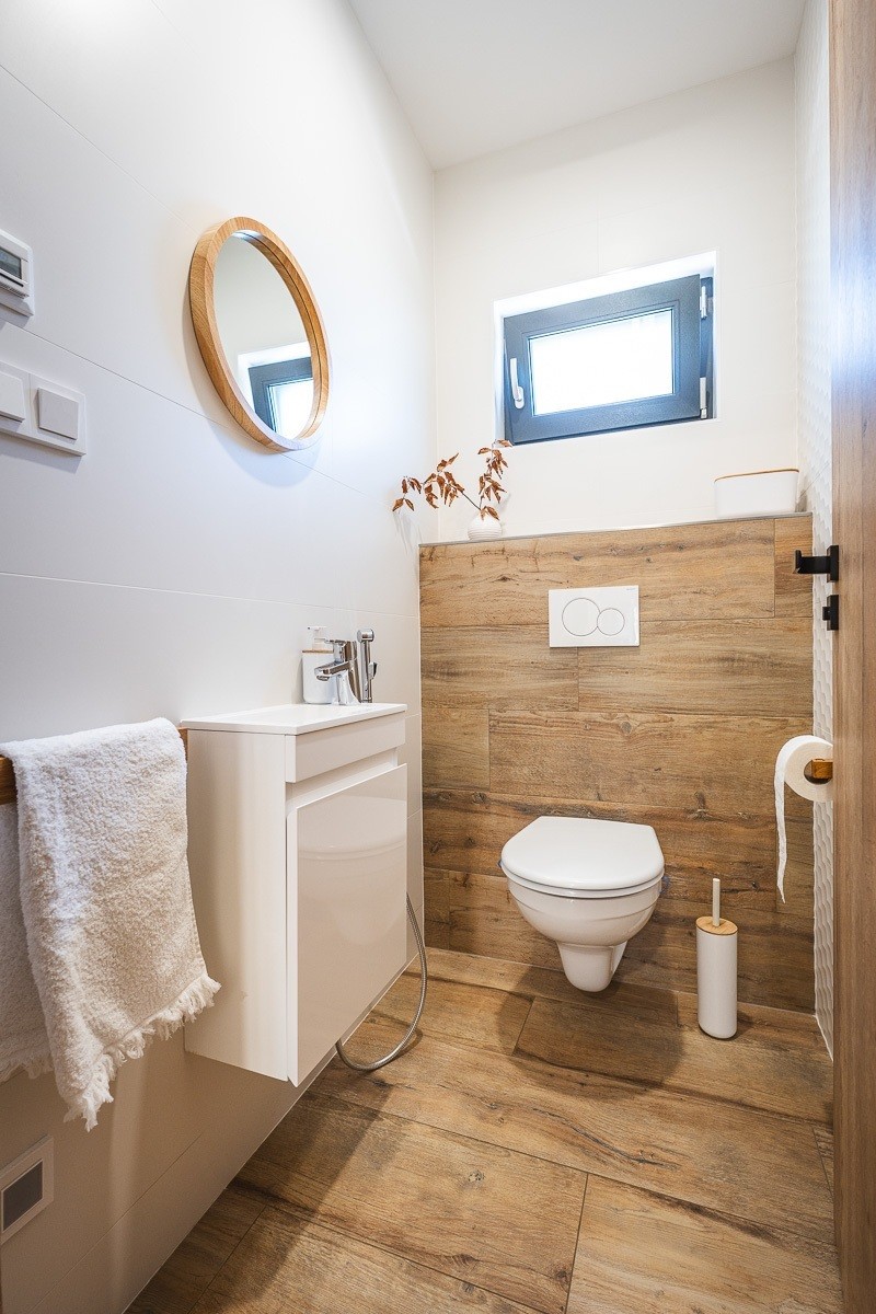 V domě jsou navržené dvě toalety. Jedna je samostatná a druhá je v koupelně