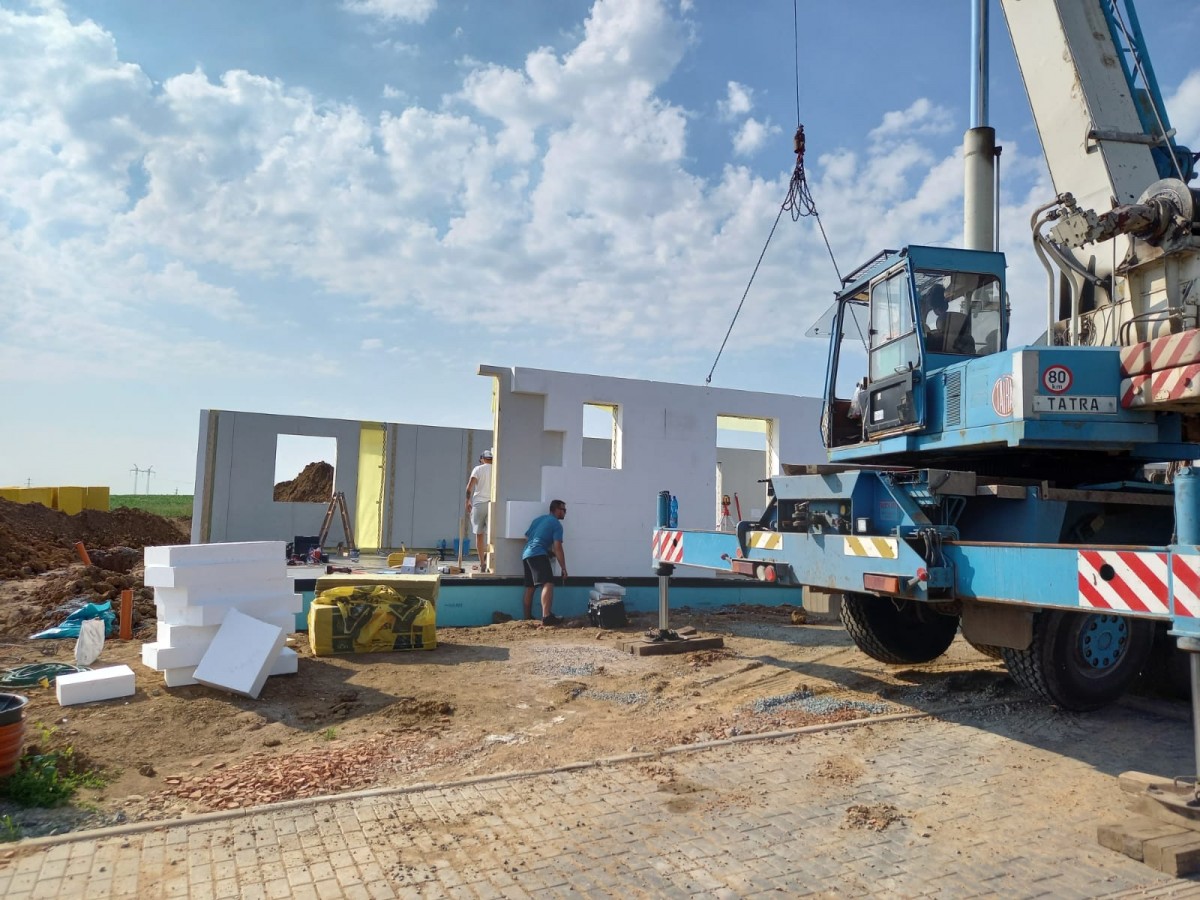 Dřevostavbu si nechali postavit ze sendvičových panelů. Během jednoho týdne stála kompletně hotová hrubá konstrukce