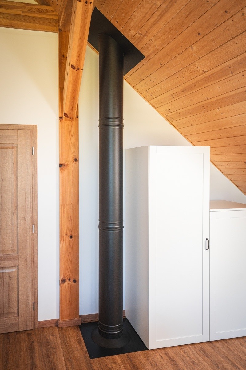 „Krb rychle a efektivně vyhřeje celý dům,“ říká Mike. Teplo dřeva doplňuje podlahové vytápění a infra folie