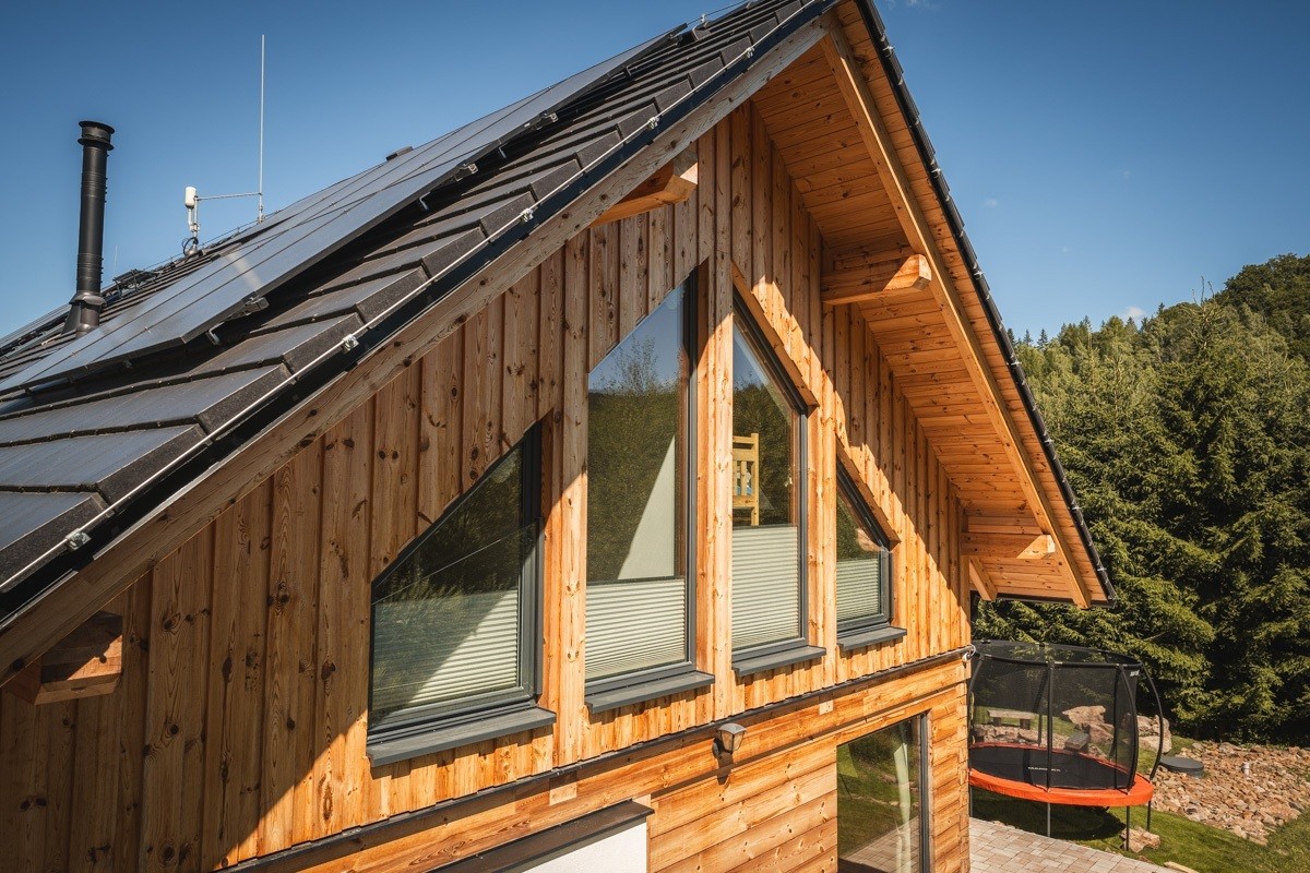 Dům ponechali zvenku zcela přírodní. Je na něm vidět slunce i déšť, olejování budou řešit až postupem času