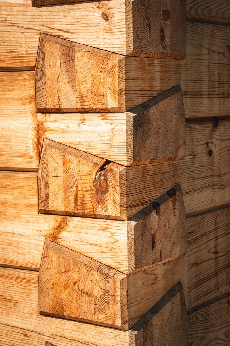 Masivní spoje trámů jsou symbolem pevnosti a řemeslné preciznosti. Každý detail ukazuje, že dům je stavěný na dlouhá desetiletí