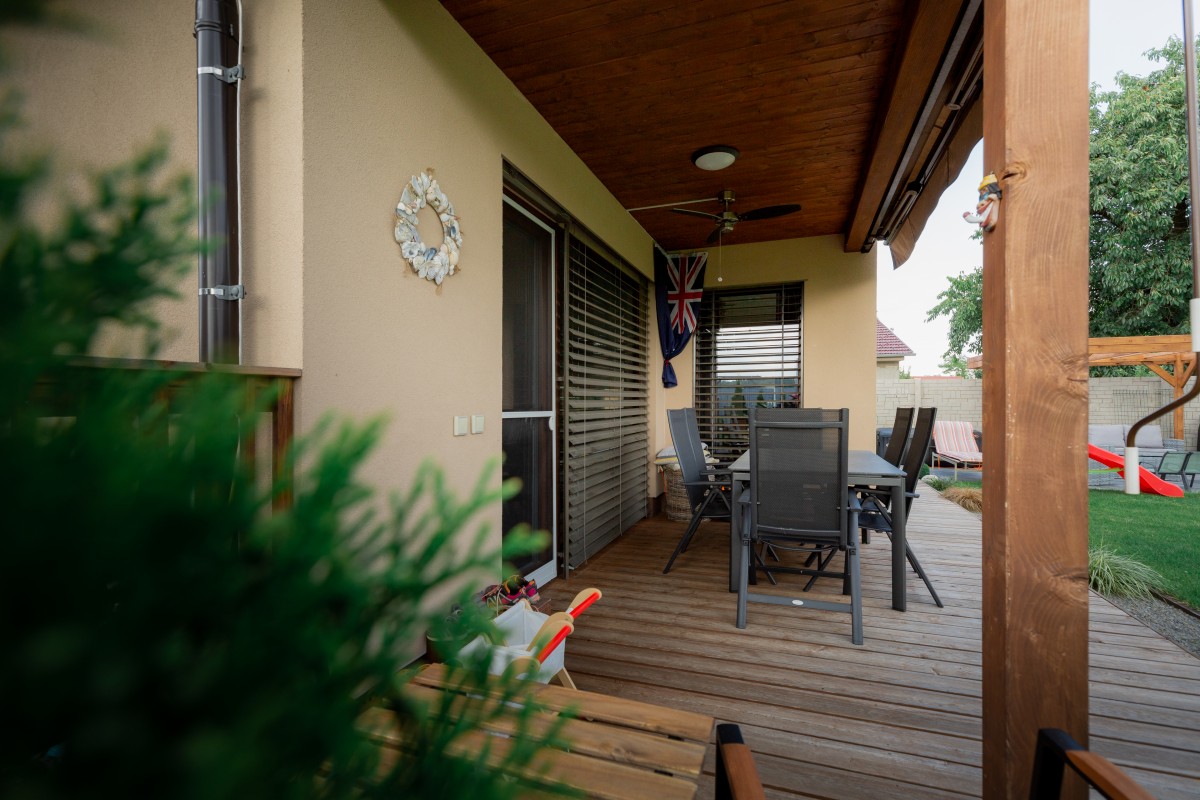 Na kryté terase můžete strávit slunné i deštivé dny, poskytne vám skvělé a chráněné zázemí