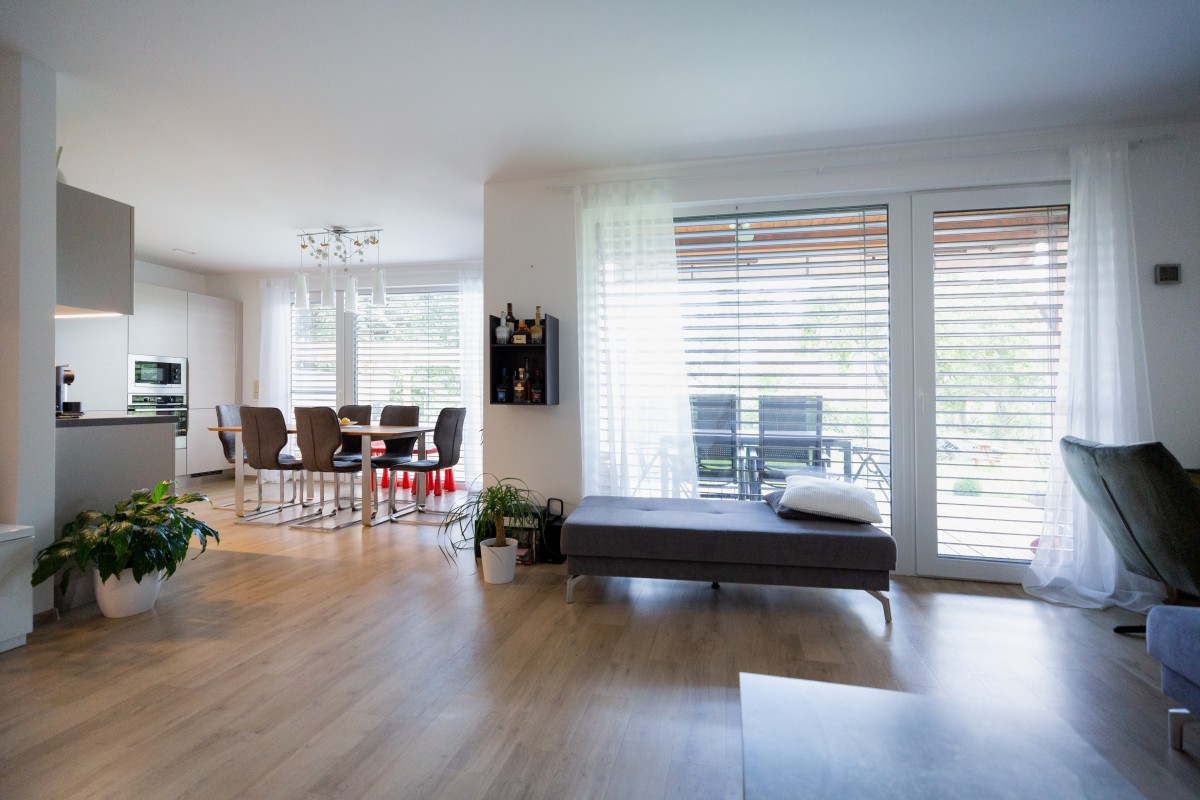 Užitná plocha obývacího pokoje s kuchyní a jídelnou je 40,3 m2