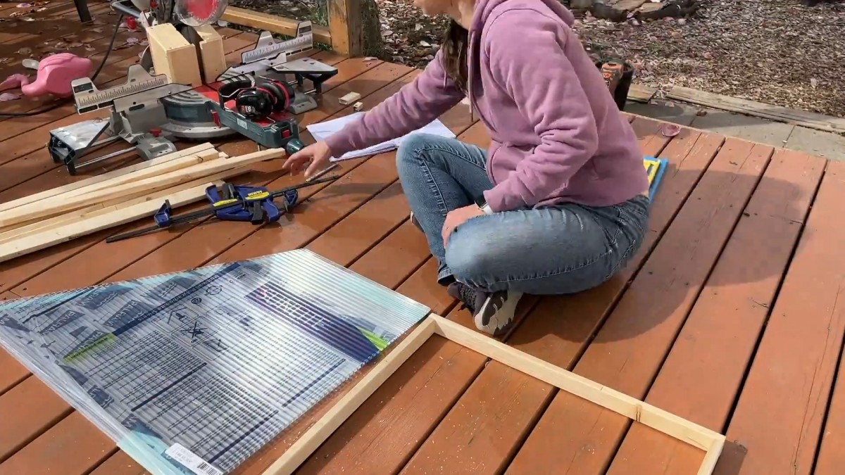 Sešroubujeme spodní obdélníkovou základnu, která určuje půdorys skleníku a musí být co nejpřesnější.