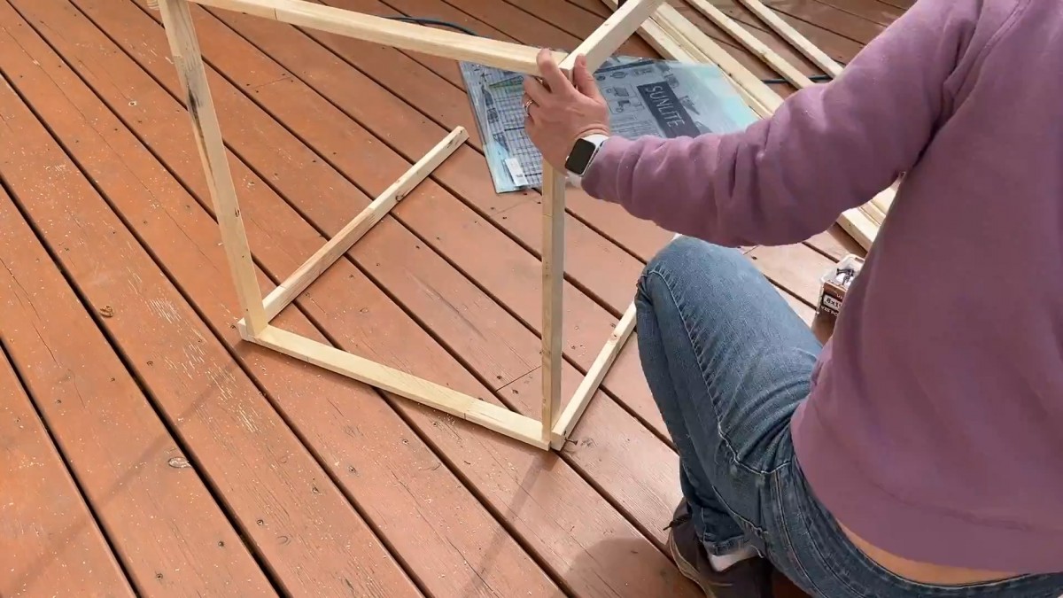 Vyzkoušíme rozvržení rámu na zemi, abychom ověřili proporce a připravili si další kroky montáže.