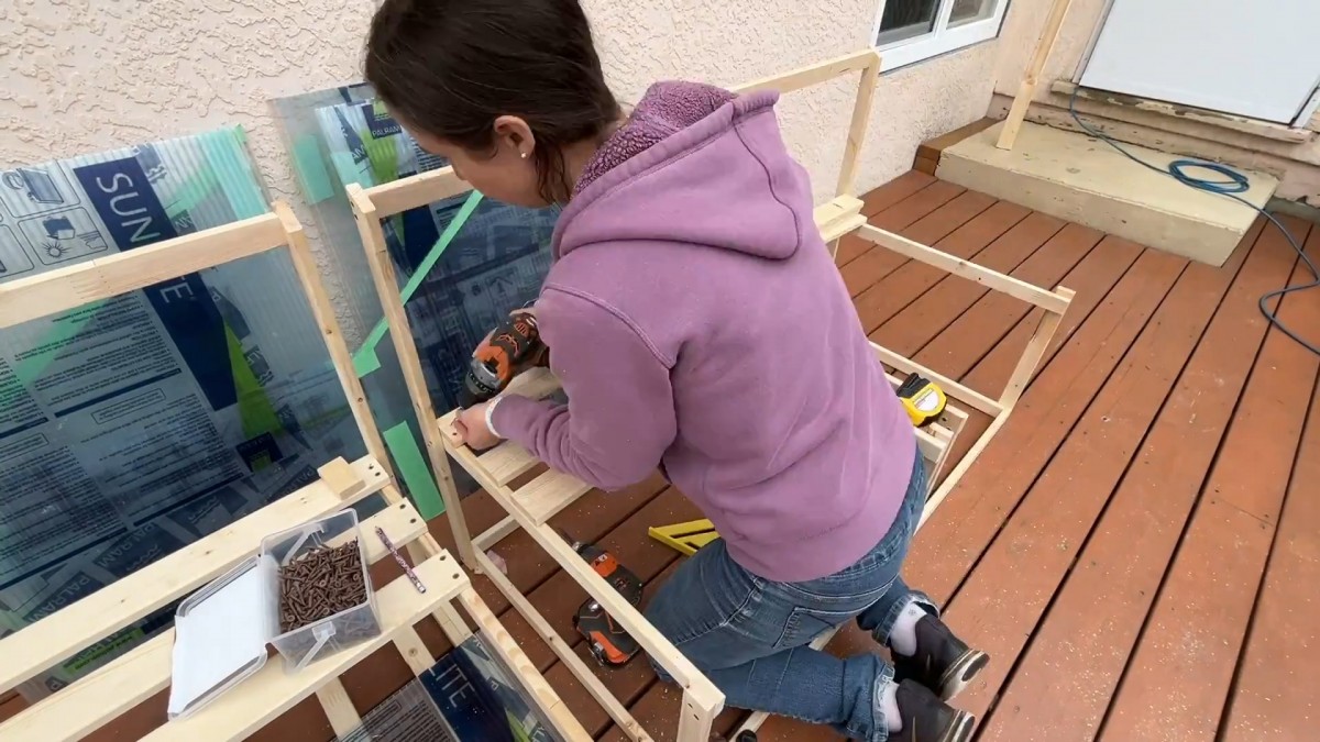 Pokračujeme v instalaci panelů na všech stranách konstrukce.
