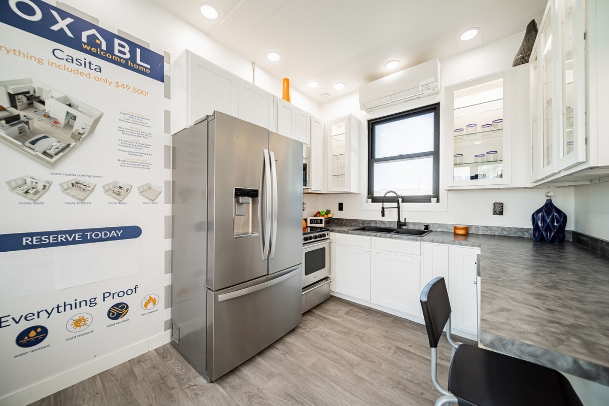 Kuchyně v tiny housu může být vybavena i stylovou americkou ledničkou. Dopřejte si komfort, na který jste zvyklí