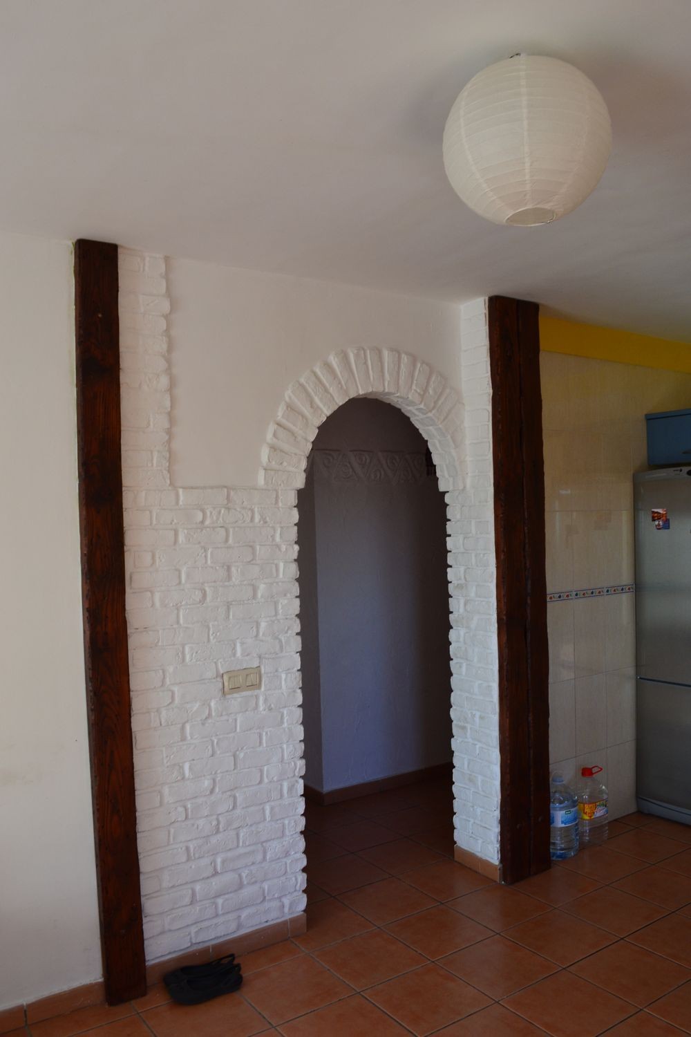 Za vstupními dveřmi je ještě chodba, která propojuje koupelnu a kuchyň