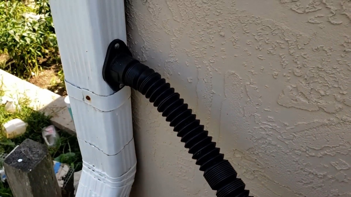 Napojení hadice na svod přivádí vodu přímo ze střechy do sudu. Spoj musí dobře těsnit, aby voda neunikala po fasádě