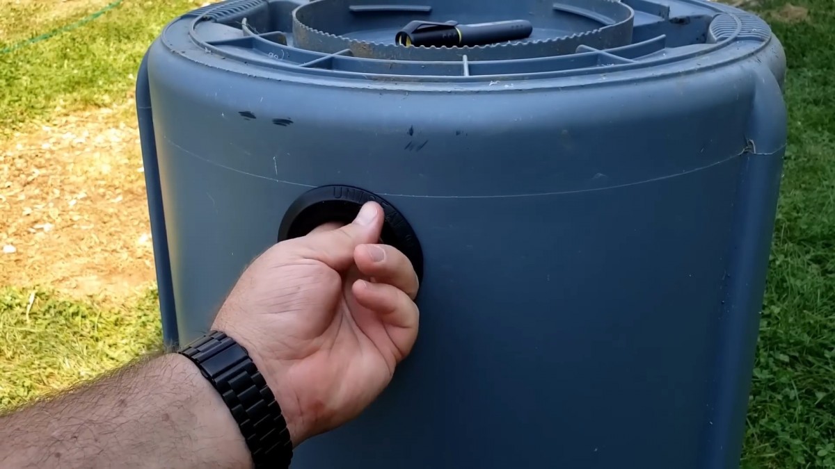 Těsnění je už částečně usazené ve stěně sudu. Teď přichází důležitý krok, dotlačit ho tak, aby přesně zapadlo a nikde nevznikla mezera