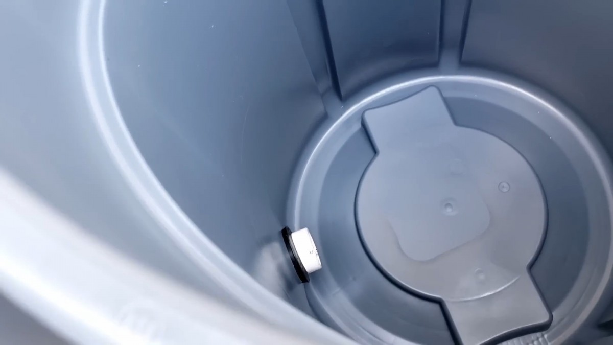 Pohled dovnitř sudu ukazuje napojení trubky zevnitř. Je dobré zkontrolovat, že těsnění správně doléhá i z vnitřní strany