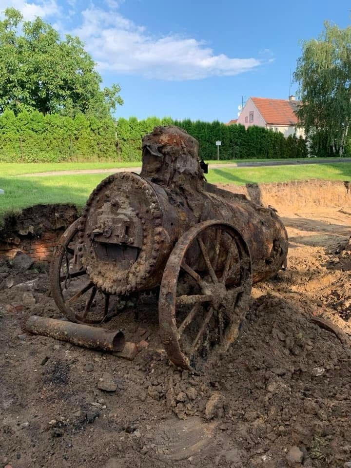 Radim našel při výkopových pracích parní zemědělský stroj z roku 1896