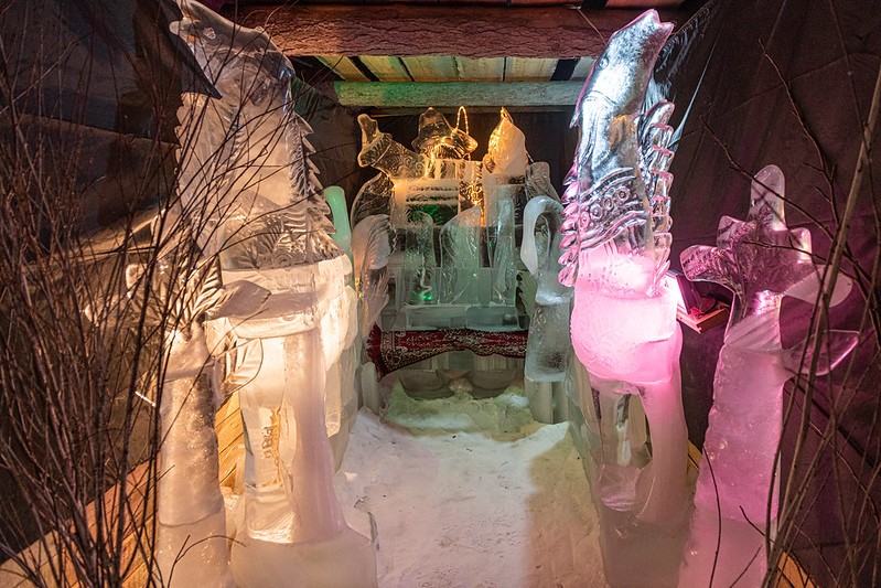 Ledové sochy a mnoho světel – to je výzdoba v nejchladnější vesnici světa