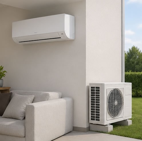 Nejlevnější vytápění je malé TČ vzduch–vzduch, které zároveň zlepšuje PENB i bez drahých systémů.