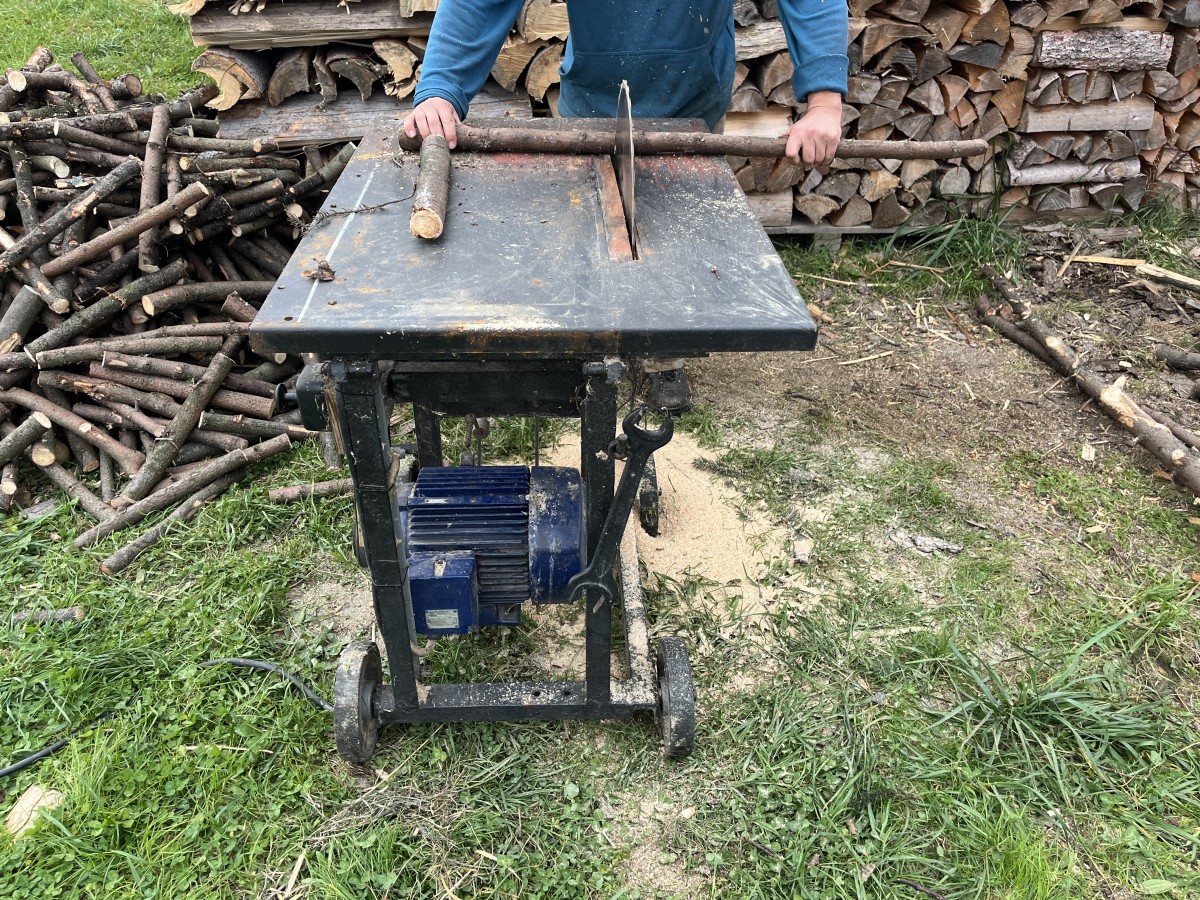 Ukázka přípravy palivového dřeva na zimu. Správná délka polen je zásadní z hlediska uložení i topného systému