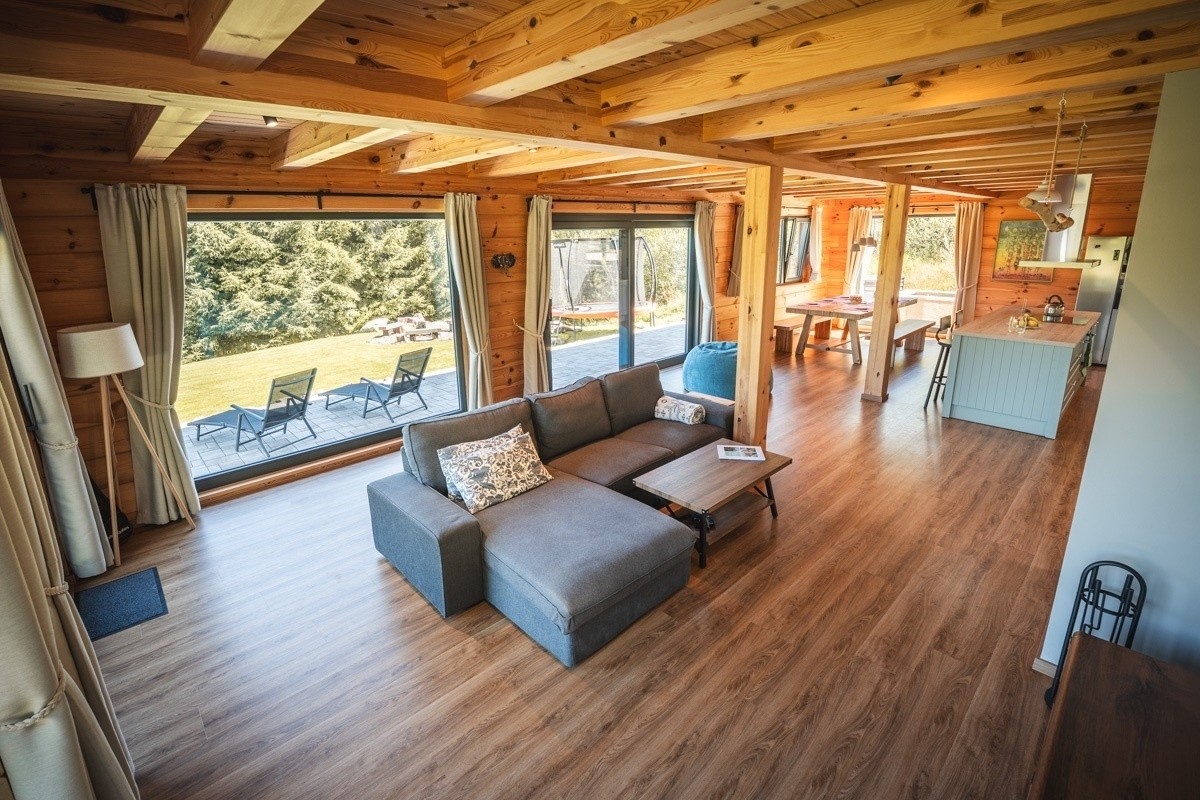 Hlavní prosklená část domu je orientována na sever, což se s firmou původně snažili změnit, aby měli uvnitř více světla a tepla