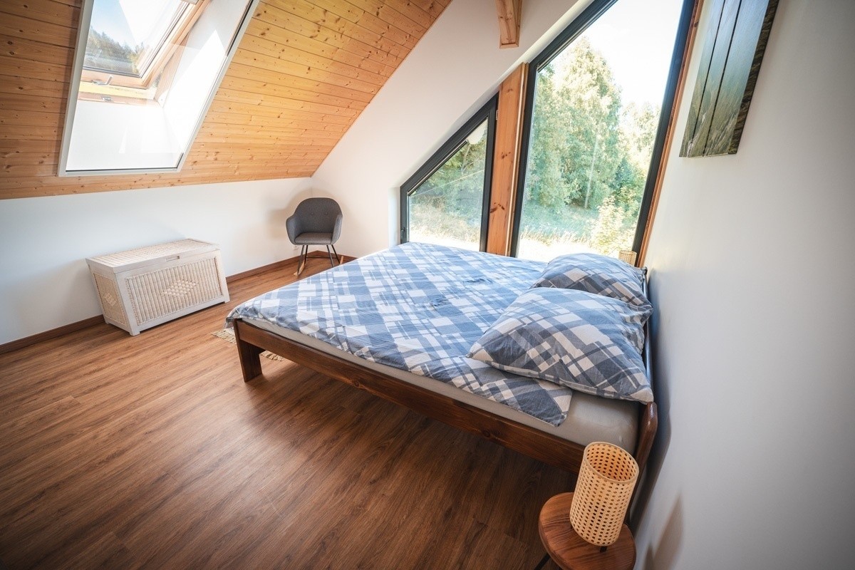 Dům stojící v západních Čechách a orientovaný na sever by většina lidí považovala za nesmysl, a to především z hlediska pasivních solárních zisků. Majitelé Katka a Mike ale dokázali, že i bez tepelného čerpadla lze dosáhnout komfortního a úsporného vytápění. Topí na 24 °C a oceňují, že se dům rychle vyhřeje, dobře drží teplo a v létě zůstává příjemně chladný, a to i bez klimatizace.