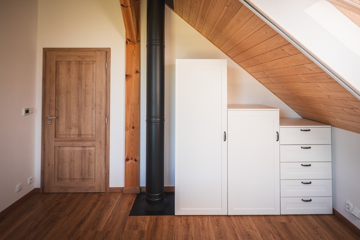 V prvním patře mají majitelé teplo, i když jsou zavřené dveře